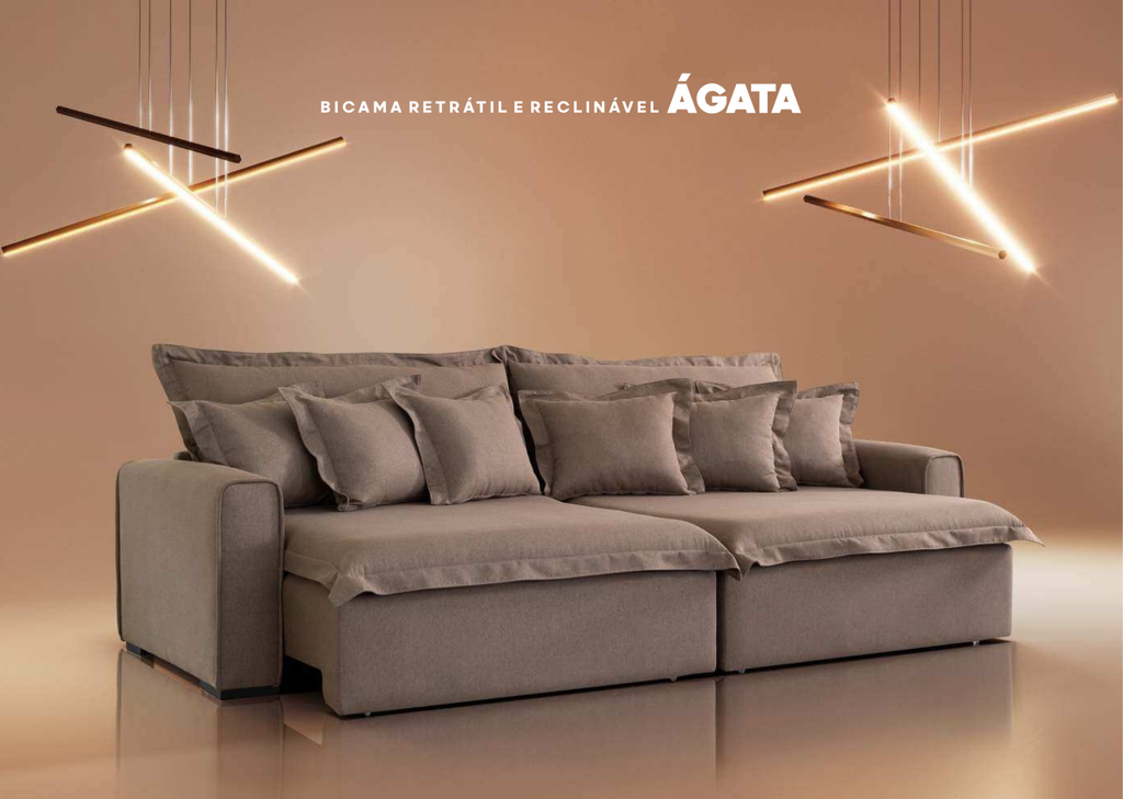 Sistema de catraca reclinável com dois estágios, almofadas soltas 100% de fibra siliconada. Almofadas decorativas 0,52 x 0,52cm