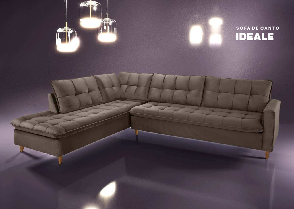 Sofá de Canto Ideale Tecido Veludo na Cor Marrom 3.00m x 2.00m